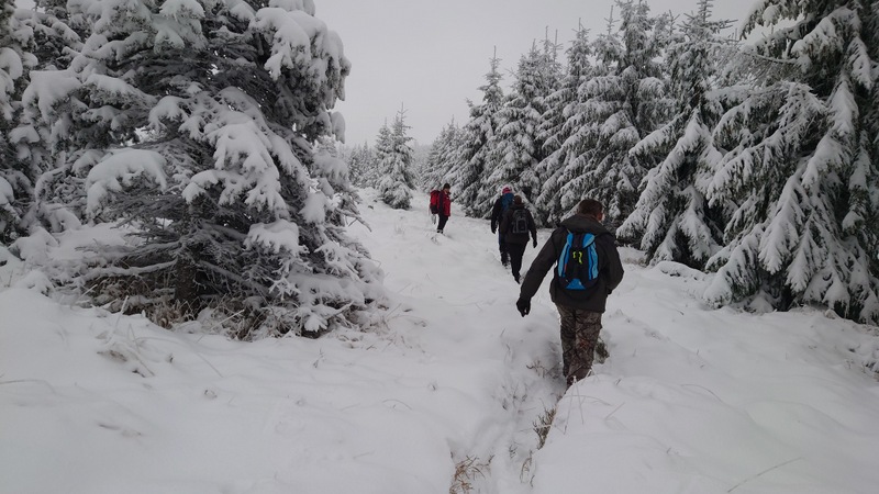 Deset poutníků šlapalo po Štolpišské cestě bíle pocukrovanou přírodou k přístřešku u císařovny Alžběty.
