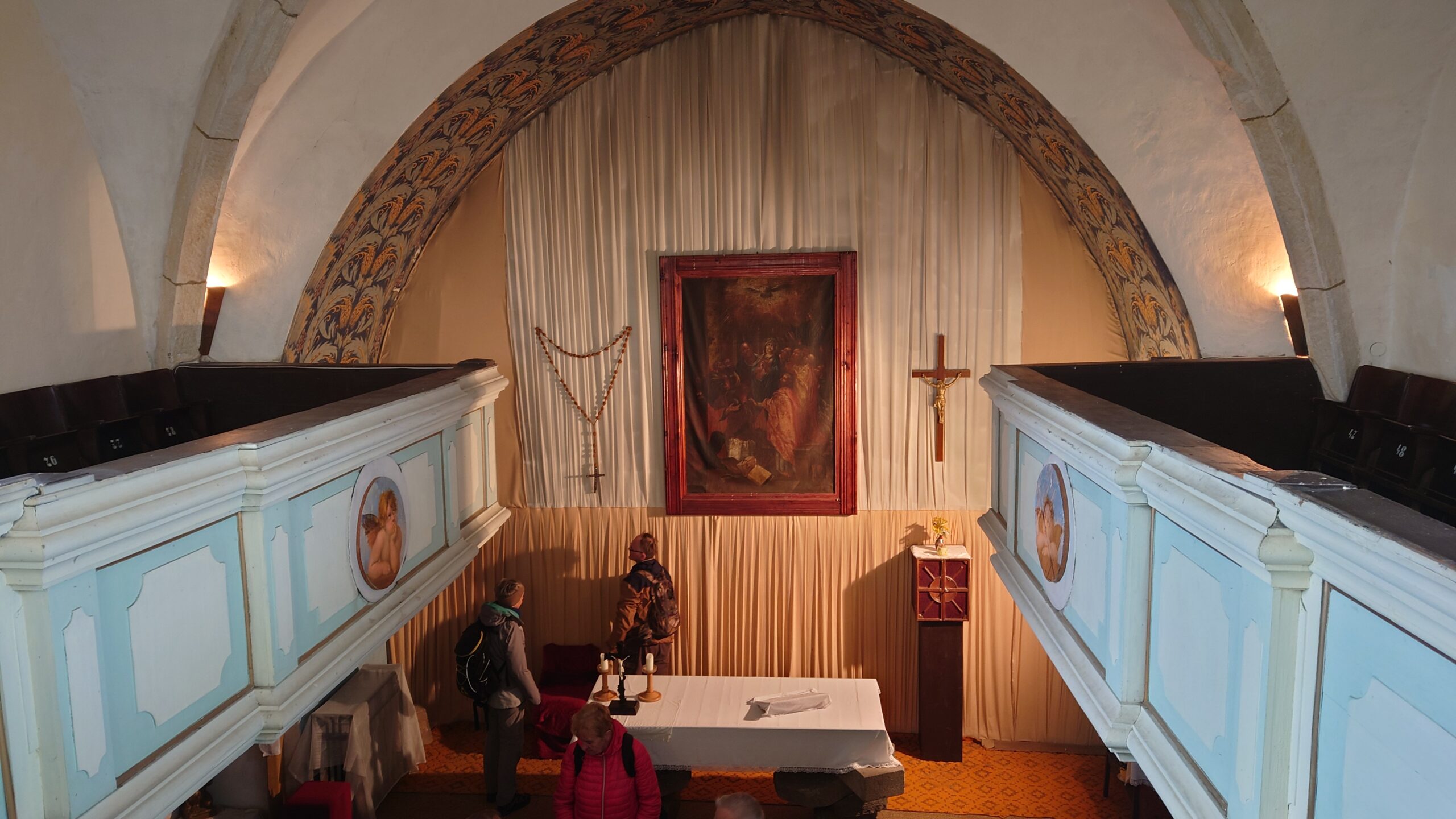Ovšem toto státem zapomenuté místo si na sebe nikdy nevydělá a tedy čeká a čeká. Část lodi kostela je upravena pro desítku věřících a zmenšena umělou stěnou ,
