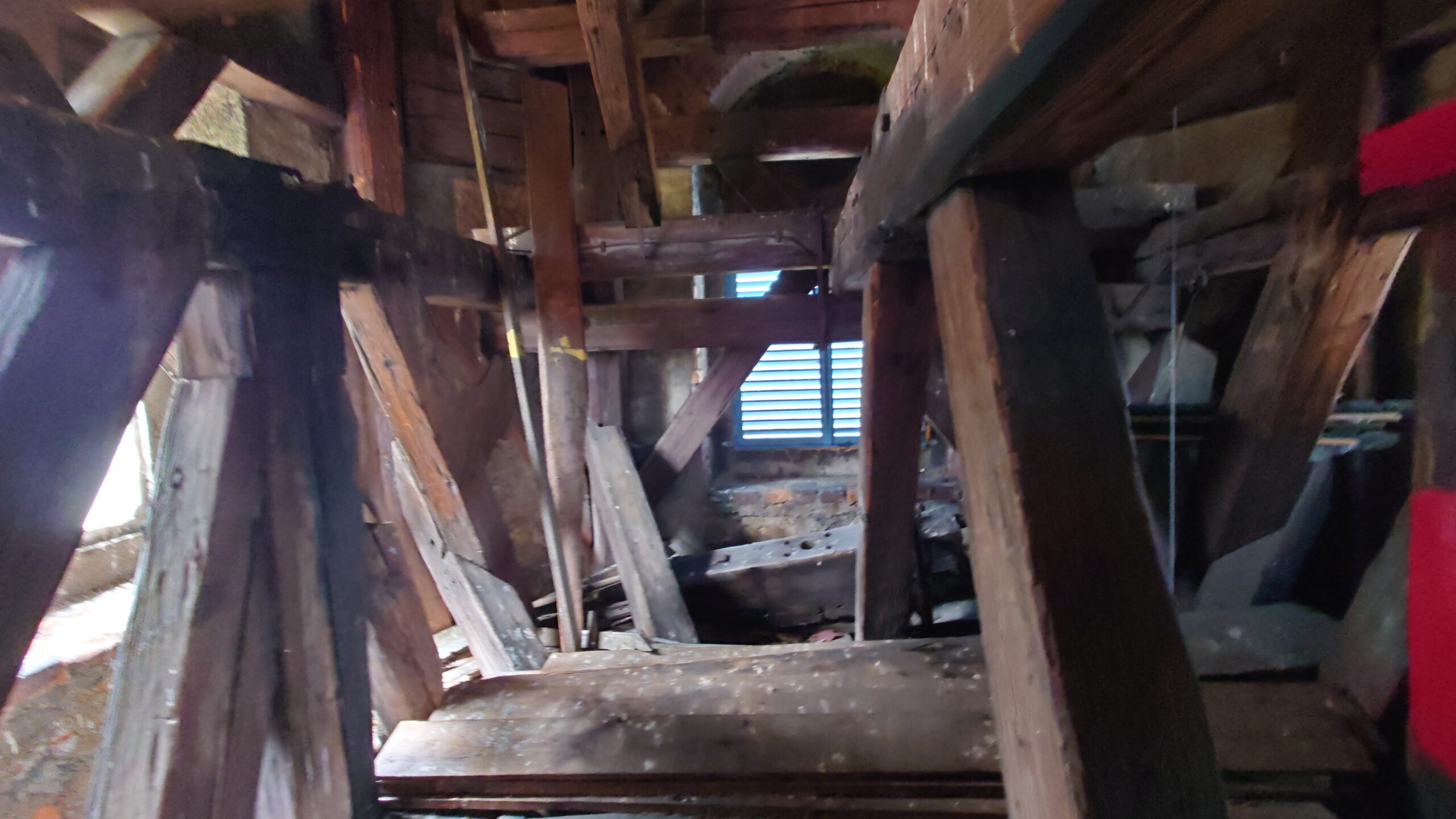 Nejvyšší patro neupravené se vstupem na vlastní nebezpečí, pod ním patro s hodinovým mechanismem poháněný elektřinou. Nad námi zvonice s menším zvonem.