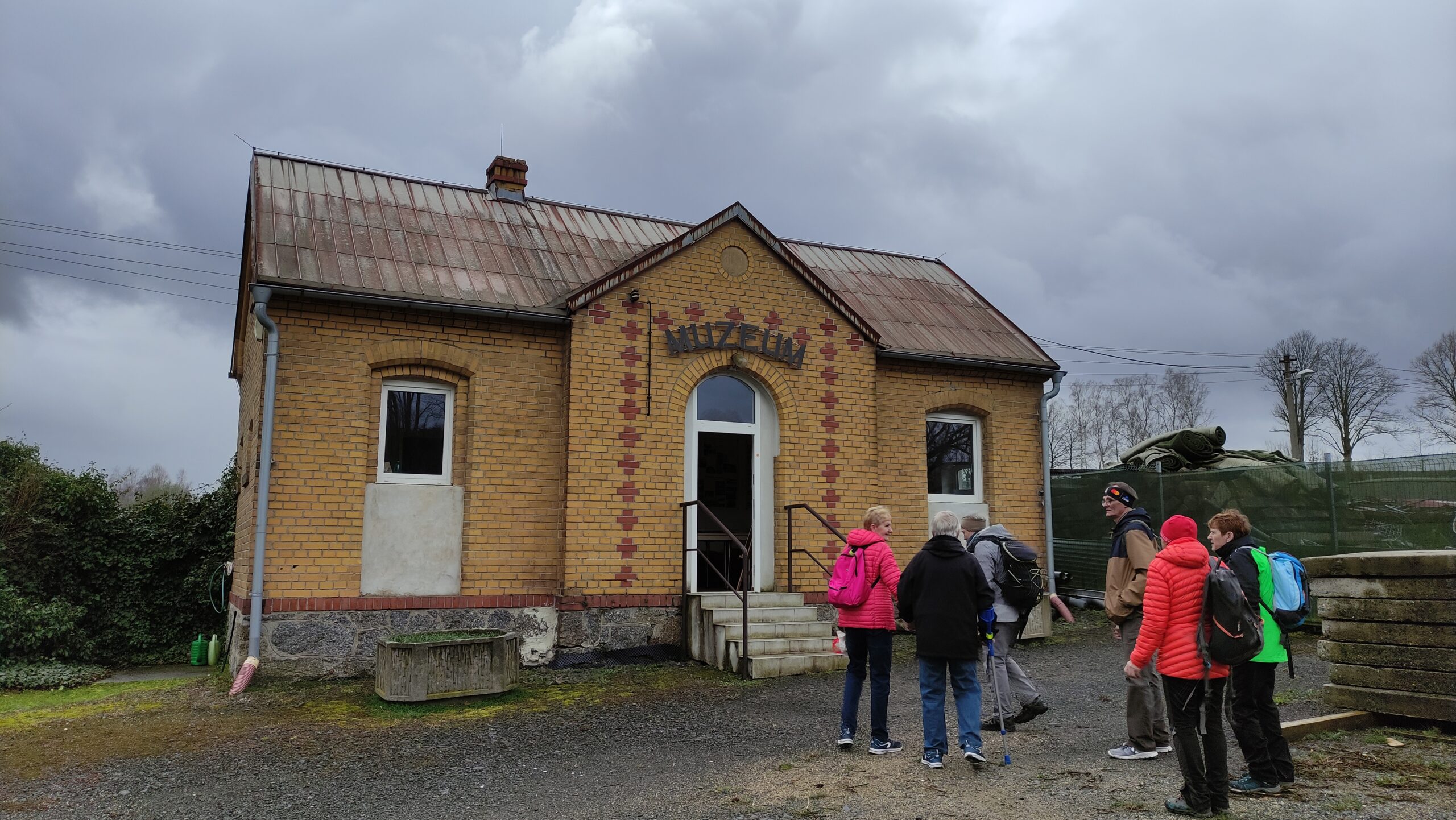 Prohlédli jsme si nedaleké muzeum vytvořené z márnice s retro sbírkami různých věcí z domova a okolí. Zde se skupina rozloučila s místními a pokračovala na Minkovice, na Vísku na památník spadlého letadla z 2. sv. války. na suchém poldru nad obcí jsme odpočívali se svačinou v ruce a já smočil nohu v přítoku.