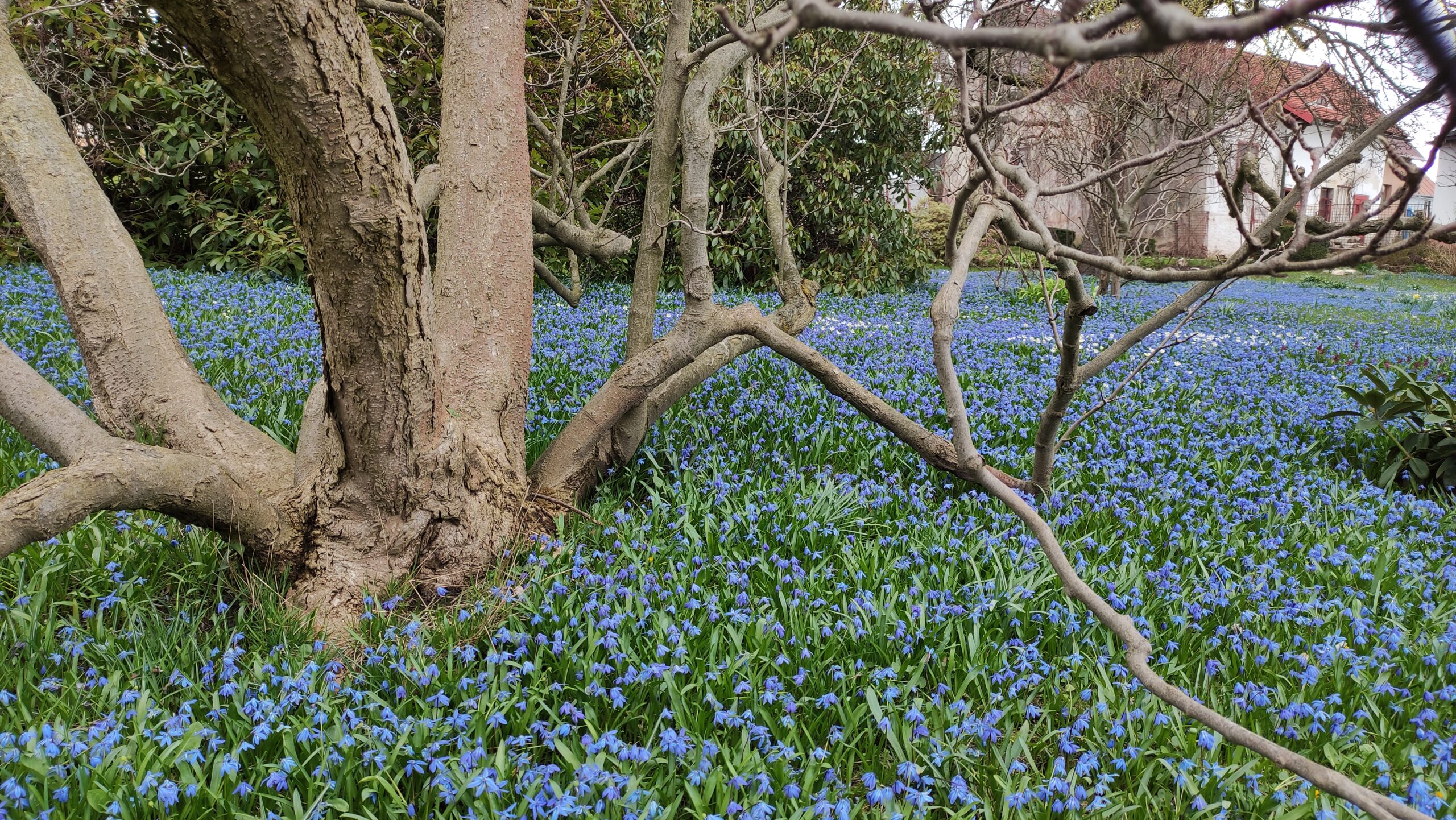 Ve městě jsme obdivovali zahradu posetou modrou květinou Ladoňkou Sibiřskou. Chvíli teplo pak jemný deštík, jenž nás naštěstí zastihl u vrat chaloupky Rudy a Marušky.