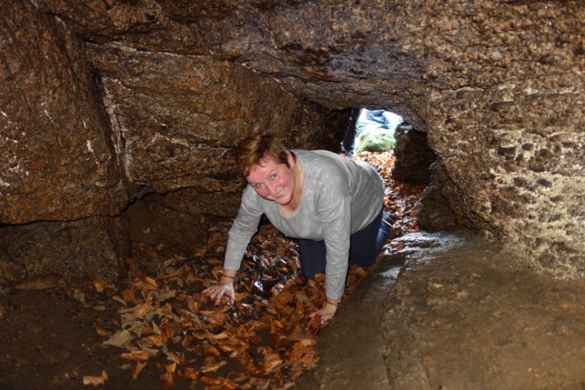 Výstup a hledání Loupežnické jeskyně po několika letech a díky mobilu s GPS se nejevil velkým problémem. Stála na stejném místě s úzkým vchodem. Úplně všichni se prosoukali dovnitř, kde obdivovali velký prostor a pavouky s kokony.