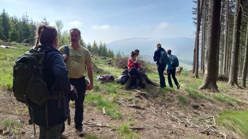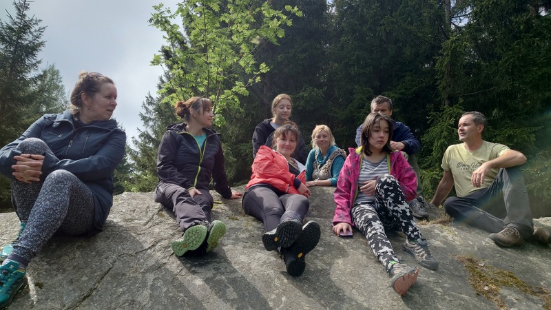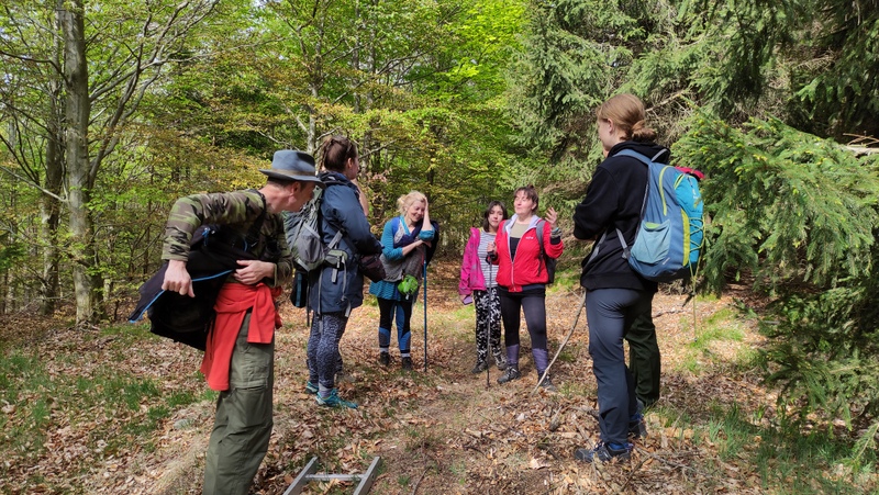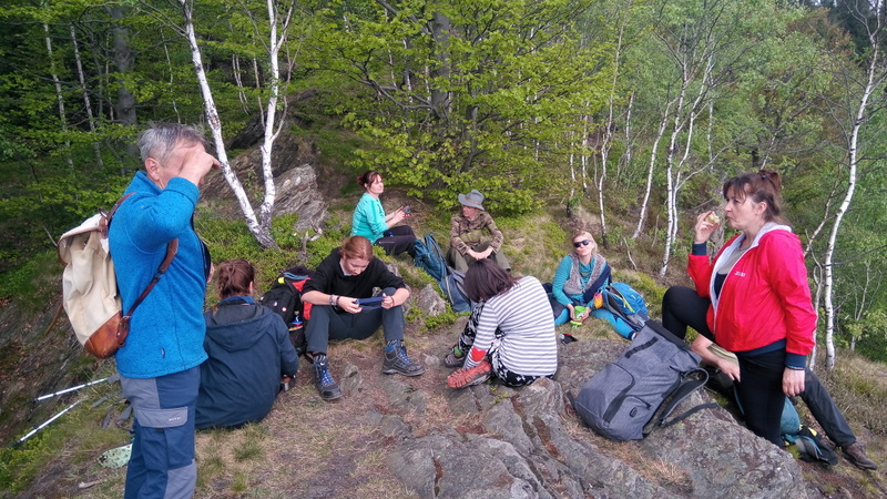 Jirka nám ukázal dva březové háje prolínající se samostatně uprostřed smrkových porostů. Po svačince jsme vyrazili k Červenému buku a po asfaltce ke Streitovi.