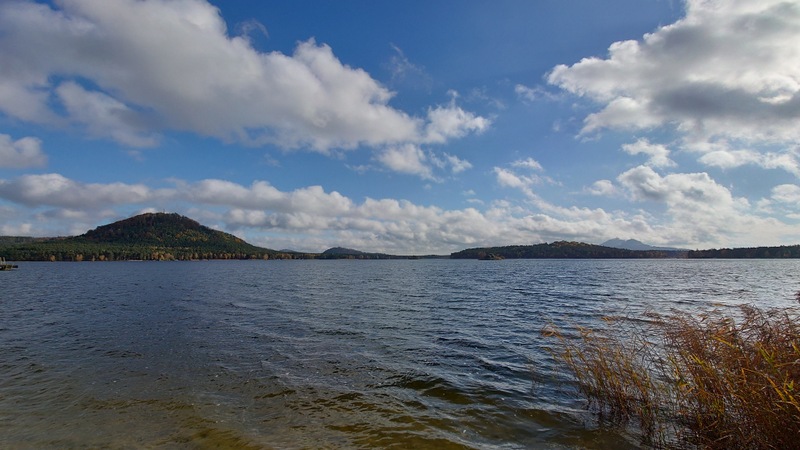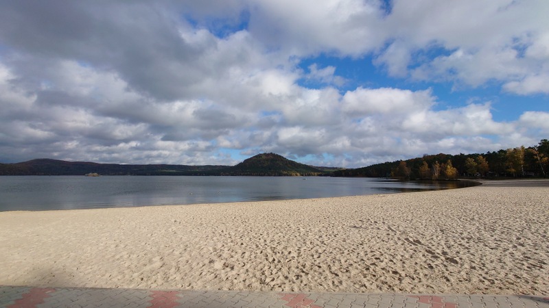 Putovali jsme tedy běžným tempem za polojasného dne kolem rybníku Máchovo jezero s písečnou opuštěnou pláží,