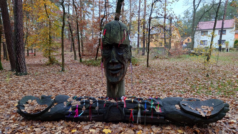 Výstup s odpočinkem na Bezdězu, z něhož jsme se kochali krásně barevnými listnáči po okolí podhradí, nejevil se nijak namáhavým. Spatřili jsme v jednom zastavení svatého frajera doufajícího v lepší časy.